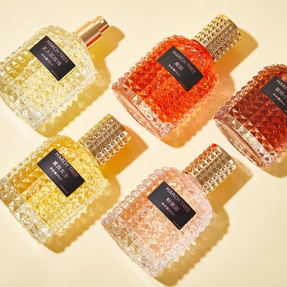- التصميم: زجاجة فاخرة بنقوش ماسية وغطاء مزين