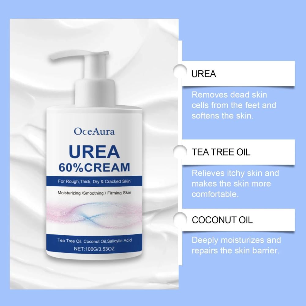 - يحتوي على 60% يوريا لترطيب مكثف وتنعيم سريع للجلد الخشن.